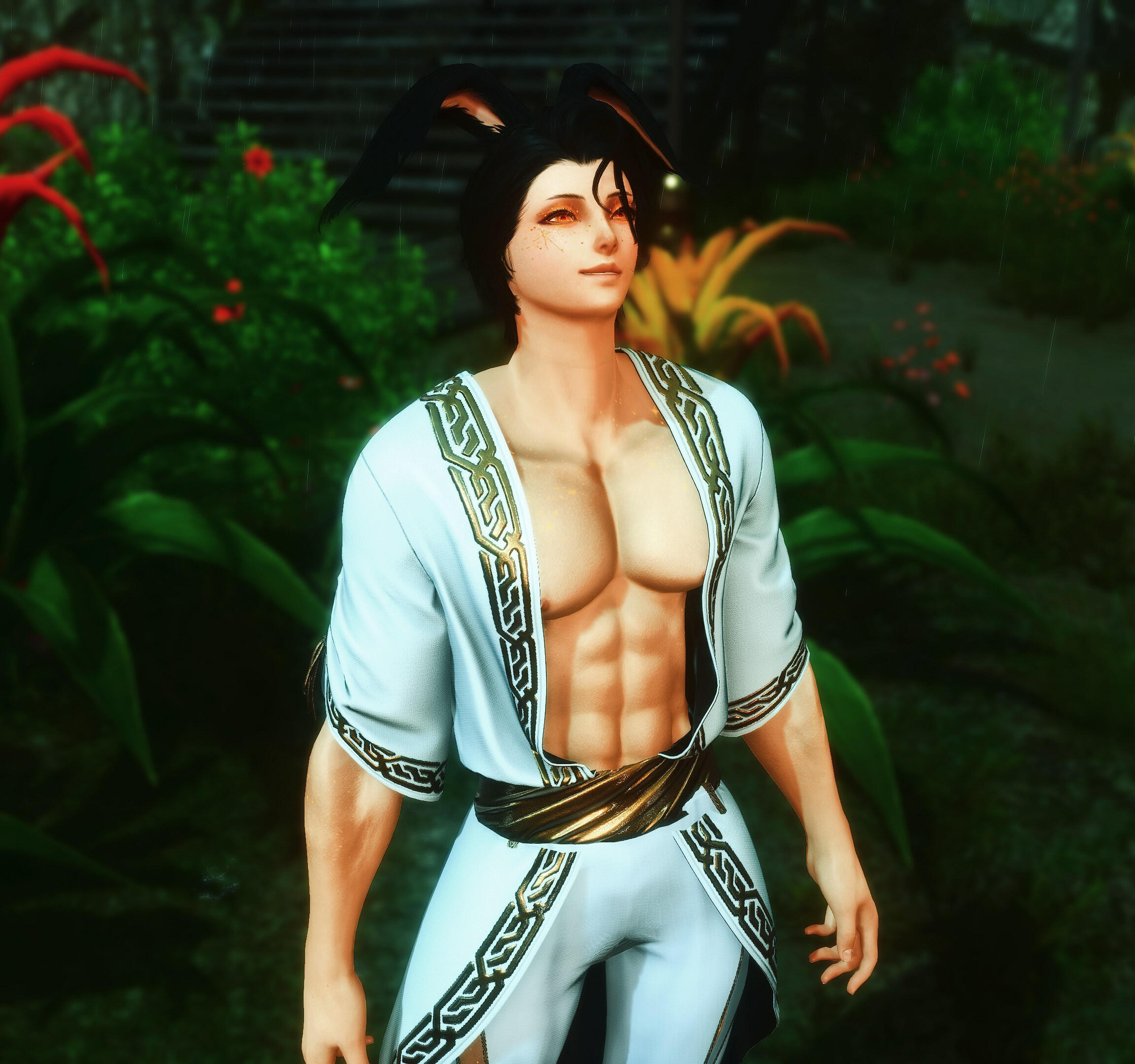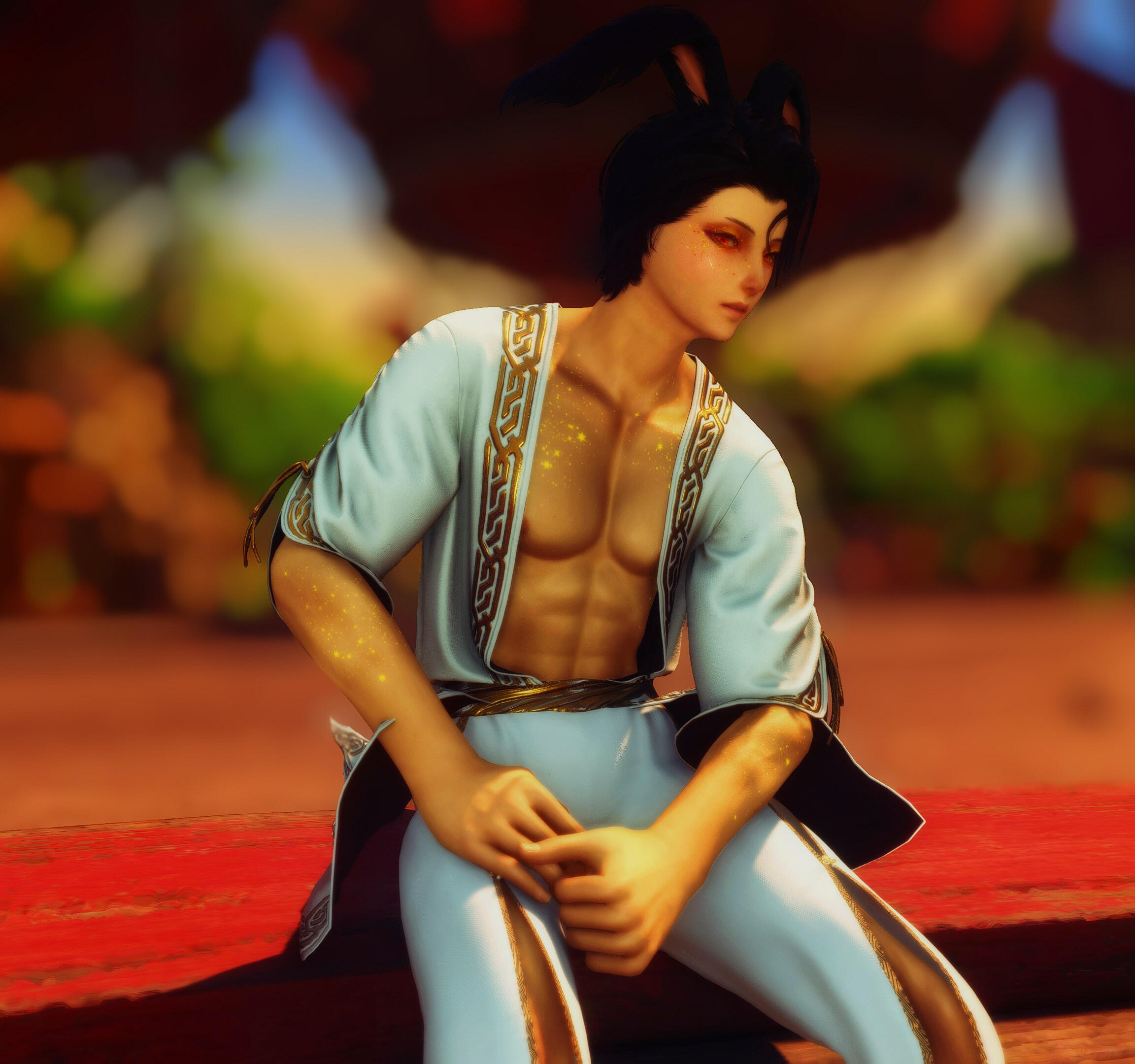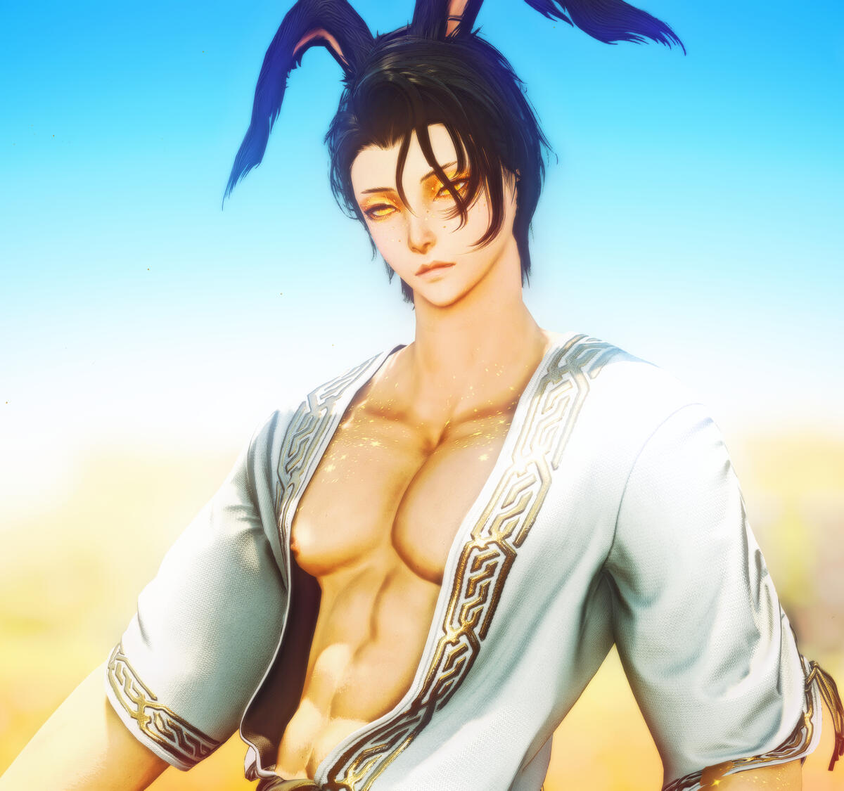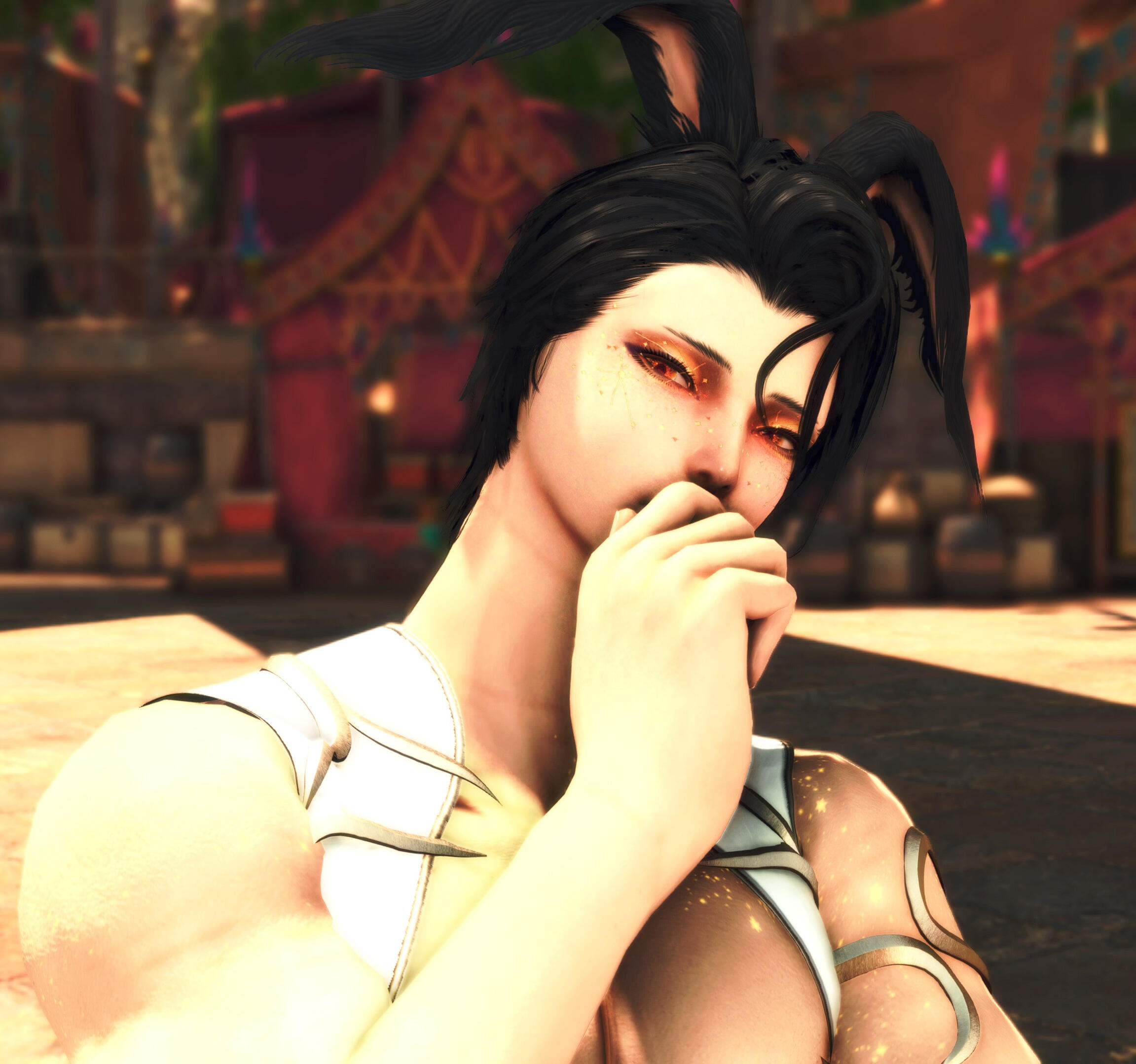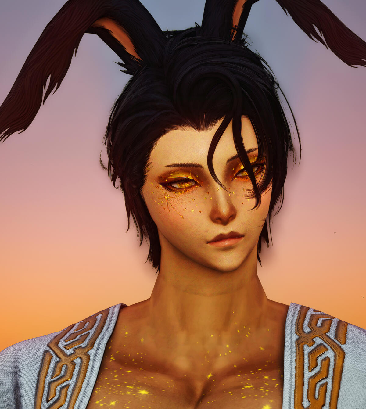 Very little is known about Xantris prior to his waking up from unconsciousness on a rock near Sheshenewezi Springs in Xak Tural, completely naked. The strange Viera could talk, but had no memories of anything prior to a flash of light and waking up. With eyes glinting like golden sunlight, small pieces of crystal lodged in his face and complete amnesia, nobody could provide answers; not that he seemed to mind. Almost immediately, he began to simply smile and offer his help to the locals.For several years, Xantris moved from community to community, offering his aid; no task too small nor great for the Viera, and soon enough any thoughts of his missing past were replaced by his present. Unburdened by the need for answers, he simply moved on and did what he could to help people across Tural, from aiding hunts to carrying parcels. Soon enough the locals stopped questioning his strangeness and simply welcomed him as one of them.When the attack on Tuliyollal came, Xantris was on his way towards the city, and in its aftermath, has been aiding recovery and rebuilding.